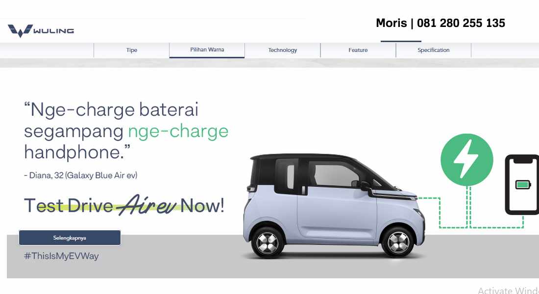 – Kemudahan pengisian daya: Anda bisa mengisi daya baterai Wuling Air EV di rumah menggunakan wall charger