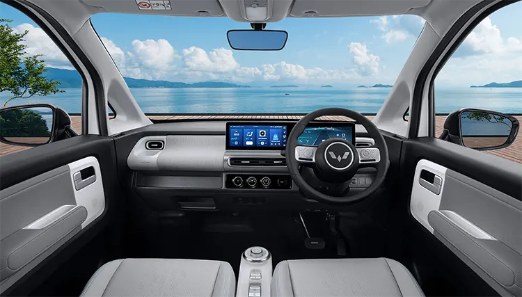Desain Wuling tidak pernah gagal untuk membuat para pecinta otomotif berdecak kagum, seperti interior Wuling Air ev. Disematkan tampilan interior stylish dan modern serta dilengkapi dengan beragam fitur canggih yang membuat kenyamanan dan keselamatan pengguna lebih terjamin.